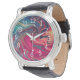 Moderne Abstracte blauwe en rode vloeibare marmer Horloge