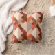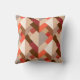 Kussen van schroefdraad in een Mid-Century Modern ontwerp van gelaagde driehoeken in tinten van bruin, taupe, beige, roest en kameel, voorzien van een mandarijnenmakersrol in sinaasappel