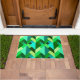 Deurmat in een modern ontwerp uit het midden van de eeuw van gelaagde driehoeken in de tinten smaragdgroen, limoen, aqua, blauwgroen en turquoise