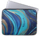 Moderne Abstracte Flow Art- Blauw en Goud- Laptop Sleeve