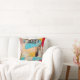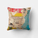 Een kunstzinnig en modern collage stijl gooien kussen. Stijlvol kussen met gooi heeft een abstract schilderontwerp in een blauw, rood en geel palet met zwarte accenten. Ontworpen voor u door Blackberry Boulevard.