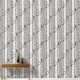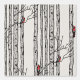 Dit moderne behang is voorzien van handgetekende berkenbomen met rode kardinaalvogels op takken in zwarte inkt, met schaduw gedaan in cross-hatch stijl, tegen een elegante ivoren achtergrond.