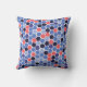 Een modern geometrisch honingraatpatroon met blauw, oranje zeebaars en koraalhexagons op een witte achtergrond.