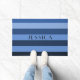 Moderne Blauwe Strepen Patroon Aangepaste Naam Deurmat.