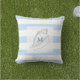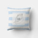 Moderne blauwe witte strepen familie monogram strand outdoor kussen Voeg uw eigen monogram om te personaliseren.