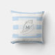 Moderne blauwe witte strepen, familie monogrammed buitenkussen