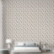 Dit leuke behang heeft een modern boho abstract vormpatroon (halve cirkels in lichte terracotta en stoffig roze, samen met bladaccenten), over een off witte achtergrond.