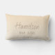 Modern neutraal roomgradiënt lumbaalkussens met de naam van uw familie en vastgestelde datum in donkere taupe.