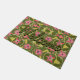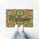 Een deurmat met patroon en een vleugje roze met rood. De donkerdere olijfgroene achtergrondkleur kan in om het even welke kleur worden veranderd om met uw deur te coördineren. Welkomsttekst kan worden aangepast aan elke kleur of patroon of tekst kan ook worden verwijderd.