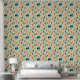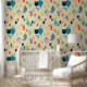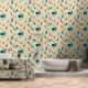 Mid Century Modern patroon van cocktails, sterbursts en diamanten in een palet van crème, turquoise en sinaasappel van 1950.
