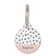 Een modern, eenvoudig label voor huisdieren met zwarte stippen en een blush roze gebied om aan te passen met uw dierennaam. Houd uw huisdier veilig door ervoor te zorgen dat uw contactgegevens altijd bij uw huisdier zijn.