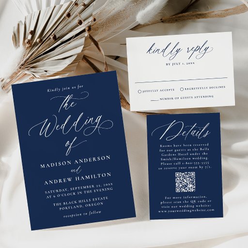 Modern Minimal Calligraphy Wedding - NavyOntworpen door Jessica Letterman