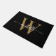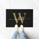 Meisjesachtige Moderne Elegante Stijlvolle Zwarte en Gouden Monogram Beginletter Naam Script Aangepaste Gepersonaliseerde Deurmat. Dit ontwerp toont een voornaam in een mooie handgeschreven zwartstaartlettertype kalligrafie (of typografie) met monogram beginletter in goud en wit op zwart. Geweldig stijlvol vrouwelijk huisverwarmingscadeau, ook voor verjaardag, trouwen, bruidsfeest, jubileum, vrijgezellenfeest en Het is voor de meid die van schone minimalistische dingen houdt.