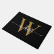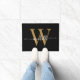 Meisjesachtig modern elegante stijlvolle zwarte en gouden monogram initiaal naam schrift aangepaste gepersonaliseerde deurmat. Dit ontwerp met een voornaam in een mooie met de hand geschreven zwiertail letter calligrafie (of typografie) met monogram initiaal in goud en wit op zwart. Geweldig stijlvol vrouwelijk cadeau voor een nieuwe woning, ook voor verjaardag, trouwdag, bruidsfeest, jubileum, pasgetrouwden, vrijgezellenfeest en het is voor de meid die van schone minimalistische dingen houdt.