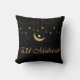 Beschikt over Ramadan Eid-verlichting en gouden Eid Mubarak-typografie op een zwarte achtergrond, mooie moderne Ramadan- en Eid-versieringen voor thuis of feest. Eid kussen decoratie door Arabix.