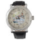 Moderne foto Opa Script Heart Watches heeft uw favoriete foto met de tekst "Wij (hart) u Opa" in een moderne witte typografie overlay. Personaliseer door de tekst in het tekstvak te bewerken. Ontworpen door ©Evco Studio www.zazzle.com/store/evcostudio