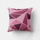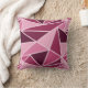 Deze gooiende kussen voorzien van een modern geometrisch patroon van driehoeken in monochromatische tinten van roze, variërend van roze baby tot roos, fuschia en bellengom.
