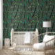 Moderne Gestileerde Groene Bomen met Zwarte Stamme Behang