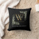 Moderne groene bladgroente Zwarte Gouden Monogram Kussen