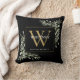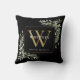 Moderne groene bloem zwarte gouden initiële monogr kussen