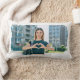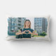 Creëer uw eigen familie foto lumbale kussen. De foto bedekt de rechthoekige vorm van een grunge-penseelstreek. Voeg tekst toe aan creëer een gepersonaliseerd cadeau.