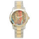 Het kleurrijke schilderij van herfstbladeren op dit fantastische horloge is een afbeelding met een waterkleur dat ik een paar jaar geleden schilderde. Ik schilderde het op basis van foto's van de bladeren van een verbluffende "rhus typhina" boom die in mijn tuin groeide. De boom staat ook bekend als "stag's-horn sumach". De verbazingwekkende herfstbladkleuren van gouden, rode, groene en blauwgroene tinten zien er heel mooi uit en ze schijnen als vlammen op een koude zonnige herfstdag. Deze realistische kunst kan ook als abstract worden gezien, maar de kleuren zijn zoals ik ze zag toen ik ze schilderde. Deze mooie herfstbladeren staan echt op deze mode. Ik heb tegenstrijdige zwarte getallen toegevoegd op dit pols horloge. Dit is een aanpasbaar horloge, u kunt het met uw eigen tekst personaliseren. Ik denk dat dit coole horloge met levendige herfstkleuren er great uitziet en een uniek cadeau voor iemand speciaal zal maken, of misschien wil je jezelf op elk moment van het jaar een welverdiende traktatie laten behandelen.