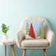 Driehoekskerstbomen in een sneeuwlandschap met een moderne kerstkussen.