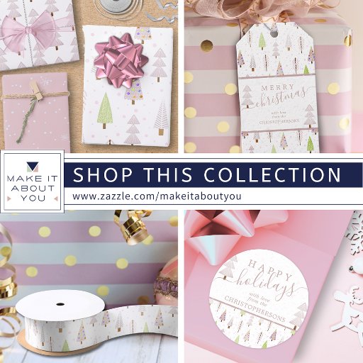 Moderne abstracte kerstbomen en bosbomen en wintersneeuwpatronen in tinten roze, bruin en limoen met de begroeting PRETTIGE FEESTDAGEN en gepersonaliseerd met jouw naam of aangepaste tekst. Neem contact op met de ontwerper via Zazzle Chat of makeitaboutyoustore@gmail.com als je wilt dat dit ontwerp gewijzigd wordt, op een ander product of dat je objecten wilt coördineren.