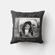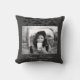 Moderne kerstboomgaard Grijze feestdag Foto Sierkussen. De kussen zijn wit, grijs en zwart met een zwart, eenvoudig kerstboompatroon. Het ontwerp heeft een foto, Prettige feestdagen wens, uw persoonlijke nota en een jaaraantal in trendy wit manuscript. Neem uw favoriete foto in de sjabloon op - de zwarte en witte fotogelijken zeer goed met het ontwerp. Pas deze kussen aan met jouw naam en jaarnummer. Het is een geweldig ontwerp voor alleenstaande mensen, familie, koppels, ... Geweldig als vakantiekust of cadeau.