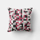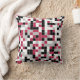Deze kleurrijke gooi kussen bevatten een multicolored geometrisch patroon in Viva Magenta, zwart, grijs en wit, en wit net. De vierkantjes zijn gekleurd in een willekeurig patroon dat op de rug hetzelfde is. U kunt de kleuren in het hulpmiddel van het Ontwerp uitgeven.