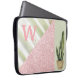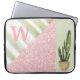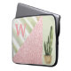 Een koraalmonogram is voorzien van een modern abstract patroon, verdeeld in driehoekige vormen. Het ontwerp bevat kleuren van koraal, een faux roze glitter en een groene achtergrond met een cactus in een pot. Voeg uw monogram toe om dit computersleeve aan te passen. Andere kleuren en patronen zijn beschikbaar.