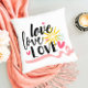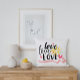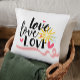 Dit feestdagen ontwerp bevat de tekst "love love love love love" in een typografie met een roze lint en harten. #love #romance #romantic #typography #modern #chic #stylish #girly #feminine #giftsforher #bedroom #cushions #bedroomdecor #hearts #feestdagen #seasonal #pillow #throwpillow #homedecor #decor #home #valentijn #valentinesday
