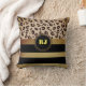 Moderne Luipaardprint Gouden Zwarte Strepen Monogr Kussen