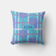 modern gestreept/madras kussen in mooi blauw, paars en wit palet.