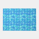 Deurmat in een midden-eeuw Modern abstract ontwerp van vierkante spiralen in lichte aqua en tinten turkoois en kobaltblauw, geaccentueerd met wit