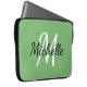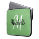 Moderne Minimale Groene Monogram Naam + Intiel Laptop Sleeve