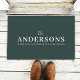 Een stijlvolle moderne deurmat met uw achternaam, die in klassieke typografie in paren wordt gerangschikt met handgeschreven script in wit boven een prachtige donkergroene kleur. Een elegant, minimaal design om uit de menigte te te komen dit kerstseizoen!