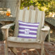 Moderne minimalistische paarse witte strips monogr buitenkussen