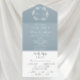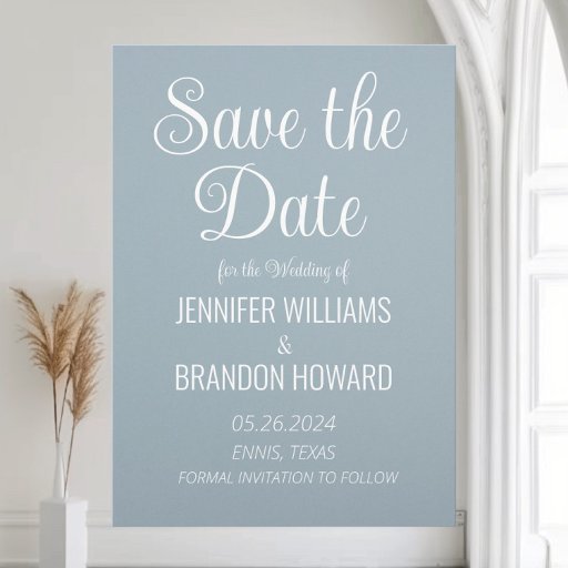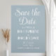Minimalistische, stoffige blauwe, elegante, moderne, qr code Wedding Save the Date. Pas het aan met je gegevens en voeg je eigen qr-code toe.