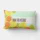 In dit ontwerp is een patroon te zien van de snijwonden van citrusvruchten in de zomer: sinaasappel, citroen en limoen. De originele voedselillustratie met gepersonaliseerde tekst maakt een moderne en unieke lumbale kussen.