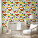 Geef je muren een frisse touch met deze fruit en groente patroon schil en stick behang. Dit leuke, moderne stijlpatroon bevat illustraties van een kleurrijk assortiment groenten en fruit tegen een crèmekleurige achtergrond. Er zijn sinaasappel- en citroenwiggen, wortelen, avocado's, blauwe bessen, komkommers en aardbeien.