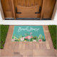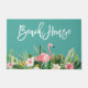 Modern Brush Script, Waterverf Tropische Bloemen met Roze Flamingo Beach House Deurmat