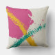 Moderne penseelstreken - Roze, Teal & Geel op Crèm Kussen