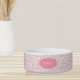 Deze moderne roze en witte penseelhol kan gepersonaliseerd worden met een naam of een monogram. Geweldig voor een kat of hond.