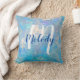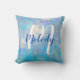 Moderne persoonlijke monogram en naam blauwe schad kussen