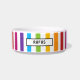 Moderne regenboogstrepen gepersonaliseerde dierenkom. Behandel uw speciale huisdier naar hun eigen gepersonaliseerde regenboog met gekleurde gestreepte, gevlekte huisdierenkom. U kunt de achtergrondkleur en de naamplaat aanpassen met een kleur van uw keus. Ontworpen door: Thisnotme©