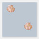 Moderne rode schelp op zacht blauw behang