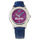 De moderne roze en zwarte kunst van de Pop Personalized Watch kenmerkt een uniek kunstontwerp van de pop met een modern kleurenpalet dat blauw en roze en zwart gebruikt om een uniek modern horloge te creëer dat gepersonaliseerd kan worden om een één-van-een-soort cadeau te maken dat je graag wilt geven.