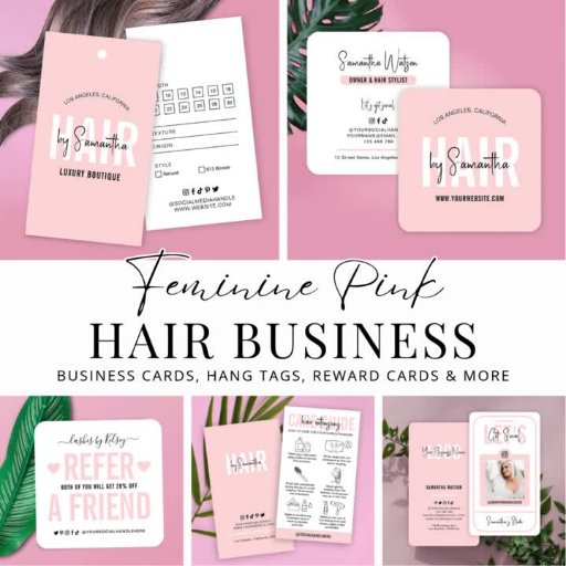 Moderne Roze Logo Haarkleur Nazorg Instructies Visitekaartje