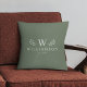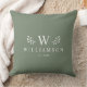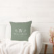 Moderne rustic monogram, aangepaste naam, gooit een kussen met je familienaam en initiaal en we zijn ook het jaar dat we zijn ingesteld, omringd door flitsende vertakkingen. Minimalistisch, eenvoudig en stijlvol, deze stoffige groene familie kussen is een perfect gezellig trouwcadeau!